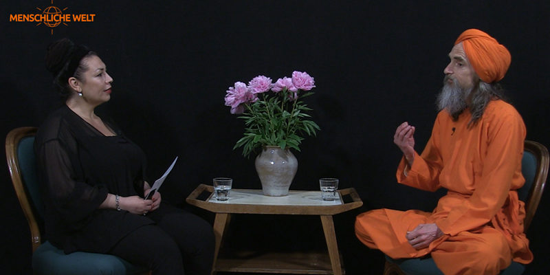Moderatorin Paula P’Cay fragt Dada Madhuvidyananda diese und andere Fragen zur EU-Wahl.